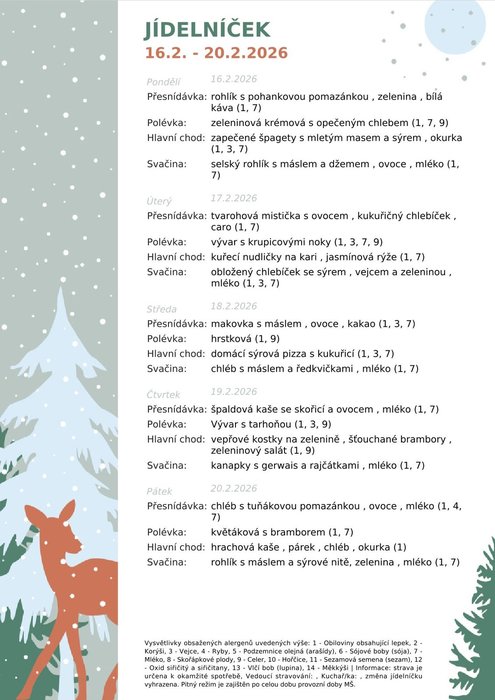 Jídelníček 16.2.-20.2.2026